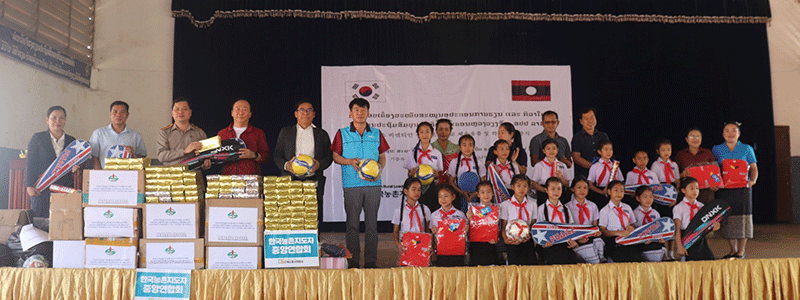 The Korean Rural Leaders’ Central Association, National Agriculture and Forestry Research Institute (NAFRI), and KOPIA Centre (Korea Partnership for Innovation of Agriculture) on March 17 donate educational supplies and sports equipment to Sathit Primary School in Vientiane. The donated items were handed over during the Korean Rural Leaders’ Central Association’s five-day visit to Laos, when members are scheduled to visit farms and agricultural institutions. The President of the Association, Mr No Man-ho, said that although the donation was modest, he hoped the sports equipment would encourage children to engage in healthy physical activities and grow up to be strong. The donation also aimed to strengthen the friendship between the Republic of Korea and Laos.