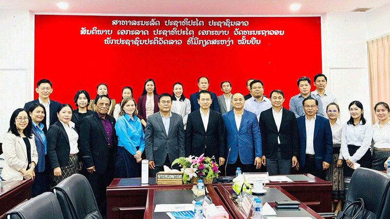 Representatives from government agencies, the Lao National Chamber of Commerce and Industry, AustCham Lao, the Asian Development Bank, and private-sector investors in the mineral industry last week gather with Minister of Industry and Commerce Mr Malaythong Kommasith for a photo during a meeting to discuss the 5-Year Mineral Development Plan for 2026-2030 and a new mechanism for mineral investment permits. The meeting was led by Deputy Minister of Industry and Commerce Dr Chansaveng Bounyong. |