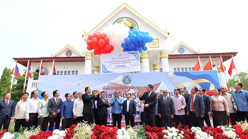 Prime Minister Sonexay Siphandone, Secretary of the Champasak Provincial Party Committee, Mr Alounxay Sounnalath, and other high-ranking officials on Tuesday attend the opening ceremony of a new building for use by the Champasak Provincial People's Council. The construction cost amounted to almost 20 billion kip. --Photo Pathetlao |