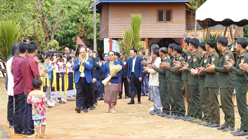 Candidates standing for election to the 10th National Assembly and Attapeu Provincial People's Council are welcomed by local residents when they visited the province on Wednesday. Some 106,716 voters from five districts are registered to vote for new National Assembly and Provincial Council members on February 22. --Photo Lao Security News |