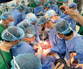 | Medical staff conduct a surgery at the National Lung Hospital in Hanoi. |