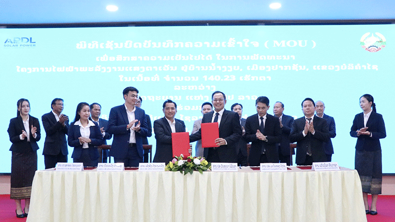 The government and APDL Solar Power Sole Co., Ltd. have entered into a Memorandum of Understanding (MOU) relating to a feasibility study concerning a solar energy project with a capacity 100 MW installation planned in Bolikhamxay province.