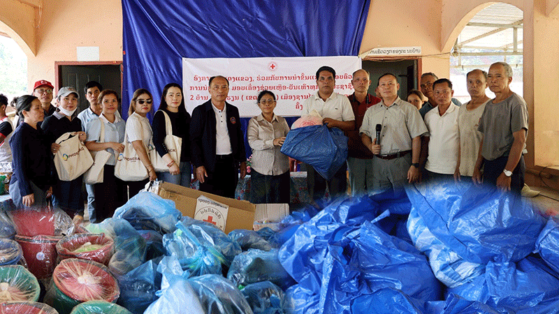 Attapeu authorities and the province’s Red Cross staff on Sunday deliver clothes and blankets, educational equipment, and a large amount of consumer goods and other supplies worth more than 367 million kip to impoverished households in Xanxay district. The donated items will be distributed to families in need to help ease their daily burden. --Photo Hatsady Soutdavong |