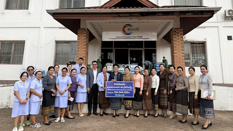 Wives of Party and state leaders last week deliver medical equipment worth more than 200 million kip to the Cancer Center for use in patient treatment. --Photo Centre of Information and Education for Health |