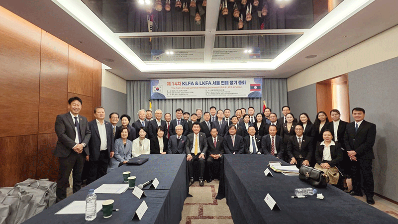 Members of the Laos-South Korea Friendship Association (LKFA) and the Korea-Laos Friendship Association (KLFA) hold their 14th Joint Meeting in Seoul, Republic of Korea, on October 23, committing to a new level of cooperation after a year of successful collaboration that delivered US$129,970 in aid for development projects in Laos, mostly in the fields of education and health. The meeting, co-chaired by LKFA President Mr Khamsouay Keodala Vong and KLFA President Mr Oh Myung Hwan, also saw the Lao government honour Korean executives with Friendship Medals for their contributions. |