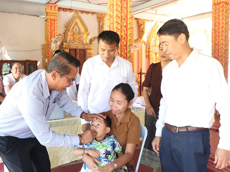 Xanasomboun district health officials in Champasak province on Tuesday immunise children in Phatthanasonephak village against common diseases, as part on an ongoing drive to reduce maternal and infant mortality rates. --Photo Champamai newspaper |