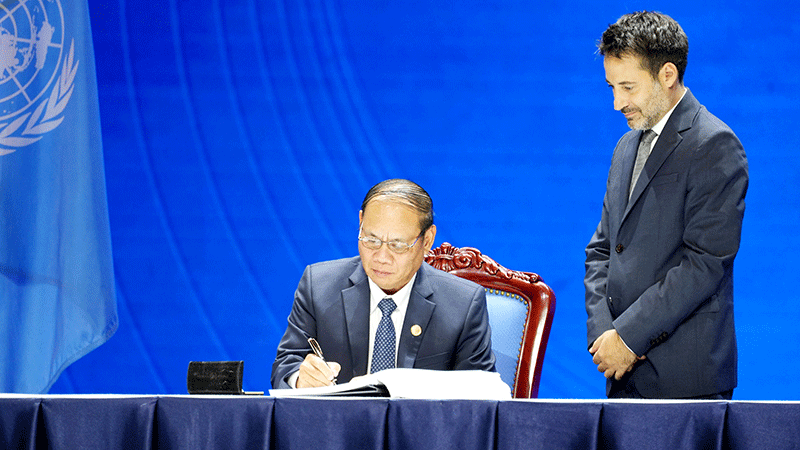 The signing ceremony, co-chaired by Vietnamese President Luong Cuong and United Nations Secretary-General António Guterres, brought together representatives from more than 110 countries.