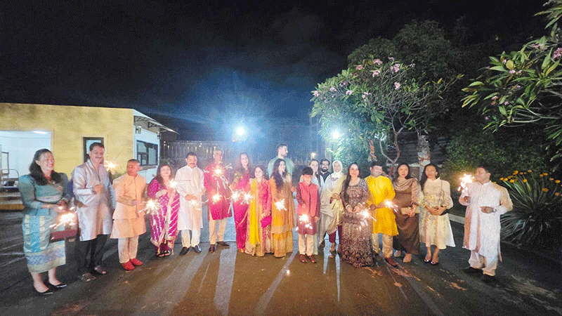 The Indian Embassy to Laos hosted an event to celebrate Diwali, the Festival of Lights, on October 24, led by the Ambassador of India to Laos, Yogeshwar Sangwan, and Mrs Indu Chahar. The event was attended by over 120 guests from the overseas, Lao and Indian communities. The festival commemorates the arrival of Lord Rama, along with the Goddess Sita and God Lakshmana, in the Indian city of Ayodhya after defeating the demon Ravana. Referring to another Diwali celebration by the Indian community in Vientiane on October 18, Ambassador Sangwan underscored the growing popularity of the festival in Laos. Highlights of the evening included the welcome of guests in the traditional Indian way with a Tilak/Tikka on the forehead, the Aarti (prayer) of Lord Ganesha and Goddess Lakshmi, Lao and Indian Bollywood dances by students at Sri Sathya Sai School, rangoli flowers, a photo booth with Diwali props, fireworks, and the serving of Indian delicacies. |