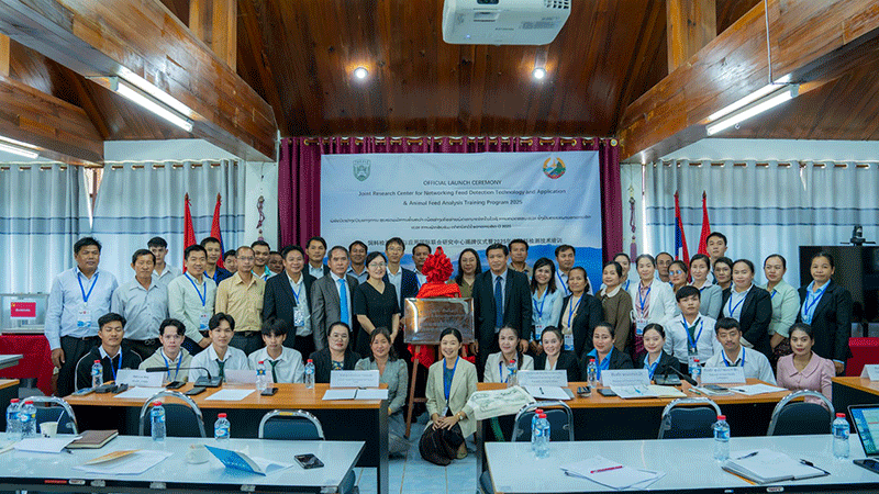 Following the inauguration, Professor Liu and her team conducted a two-day specialised training session for Lao professionals in the field. The sessions combined theoretical instruction with practical demonstrations, focusing on feed testing technologies and standard methods to strengthen local capacity in feed quality assurance and safety monitoring.