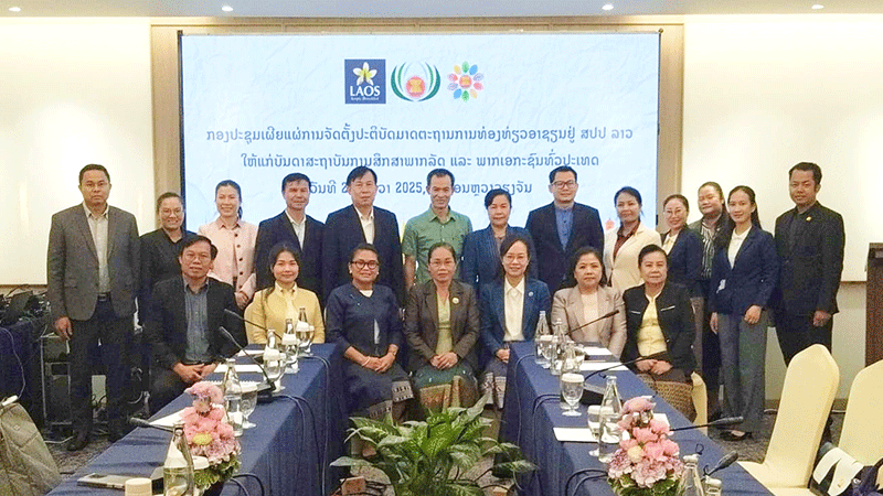 Officials at the Department of Tourism Development gather for a conference in Vientiane to promote ASEAN tourism standards, aiming to strengthen the capacity of training institutions and tourism businesses. Compliance with set standards is essential for building tourists’ confidence in safety, comfort and product quality. Standards aim to enhance service quality, promote sustainable tourism, safeguard natural and cultural resources, and encourage community participation. Standards also contribute to economic growth by increasing product value, income, investment and employment, while improving Laos’ competitiveness internationally. The conference was chaired by Deputy Minister of Culture and Tourism Mrs Darany Phommavongsa. |
