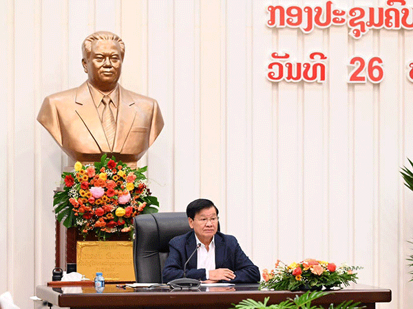 Party Secretary General and President Thongloun Sisoulith chairs a meeting to review preparations for the Party’s 12th National Congress next month.