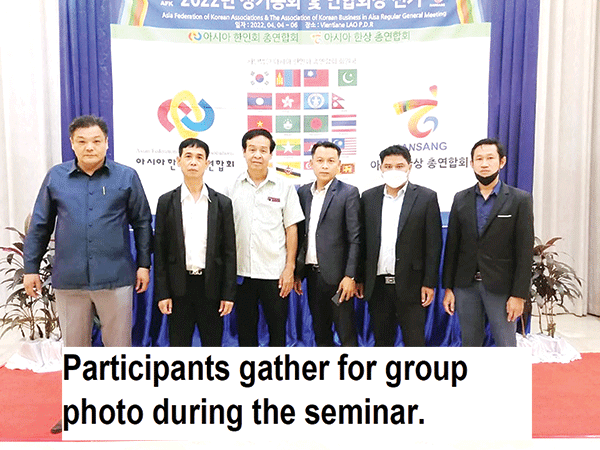 The Laos-R. Korea Tourism Association recently held a seminar at the Landmark Mekong Riverside Hotel in Vientiane, when members of the Asian Korean Association and the Asian Korean Business Association also took part online.