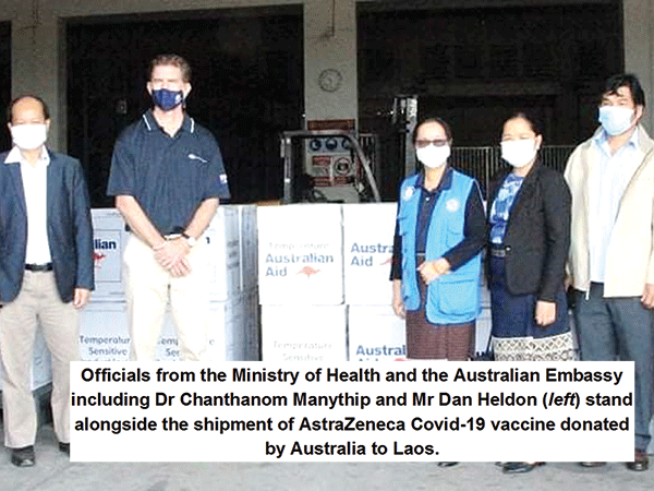The Australian government has confirmed it will continue to provide Covid-19 vaccines in support of Laos’ efforts to contain the virus outbreak and to vaccinate 70 percent of the population by the end of 2022.
