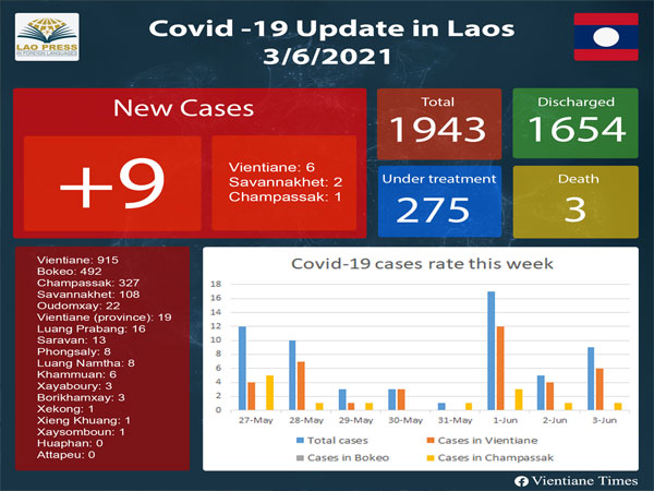Six of the new cases occurred in Vientiane, while Champassak reported one imported case and Savannakhet province reported two imported case.