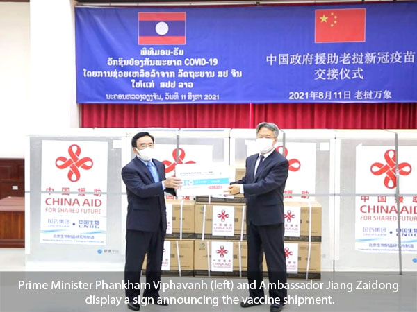 Chinese Ambassador to Laos Mr Jiang Zaidong said the donation of vaccines not only demonstrates China’s strong commitment to help developing countries but also reflects the true nature of Laos-China strategic cooperation.