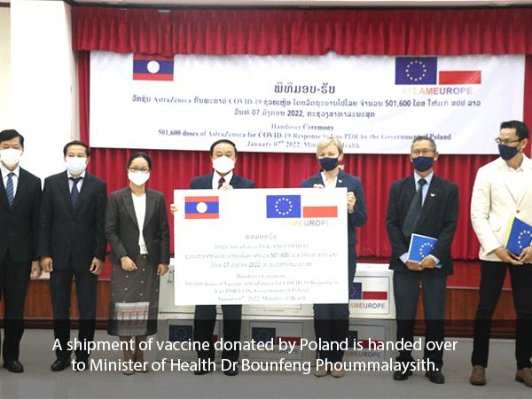 As a further boost to the vaccination programme, a second donation of 501,600 doses of the AstraZeneca Covid-19 vaccine has been provided by Poland and handed over to Minister of Health Dr Bounfeng Phoummalaysith.