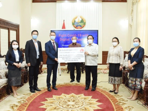 The donation was presented in Vientiane by CEO of Huawei Laos, Mr Hu Weihua to Minister, Head of the Prime Minister’s Office, Mr Khamjane Vongphosy and witnessed by Deputy Prime Minister, Chairman of the National Taskforce Committee for Covid-19 Prevention and Control, Deputy Prime Minister Prof. Dr Kikeo Khaykhamphithoune.
