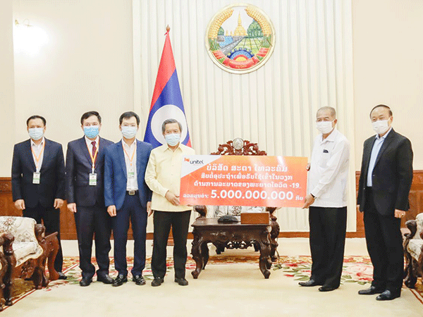 Ministry, Unitel provide 5 billion kip to manage Covid-19 outbreak