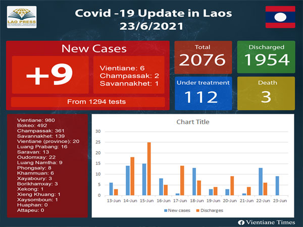 The new infections comprised six community-acquired cases in Vientiane, one imported case in Savannakhet and two imported cases in Champassak.