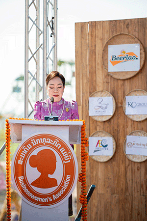 | The President of the Lao Businesswomen’s Association and Head of the Organising Committee for the Lao Food Festival delivers the opening remarks. |
