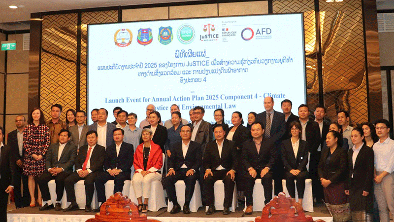 The launch outlined the planned actions of the JuSTICE Project in 2025, with key partners including the People’s Supreme Court, the Office of the Supreme People’s Prosecutor, the National Institute of Justice, the Lao Bar Association, and the Ministry of Natural Resources and Environment working together to strengthen environmental governance and justice frameworks in Laos.