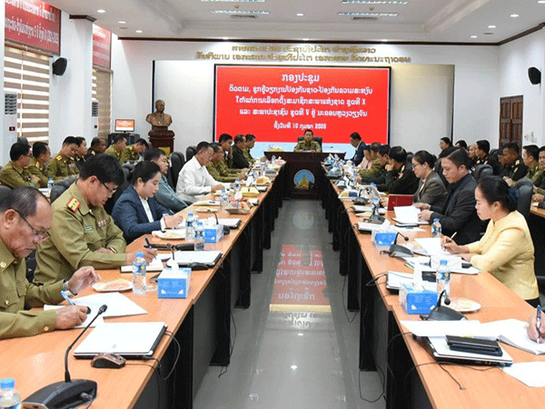 Officials in charge of public security preparations meet with Minister of Public Security, Lieutenant General Vanthong Kongmany, on Tuesday.