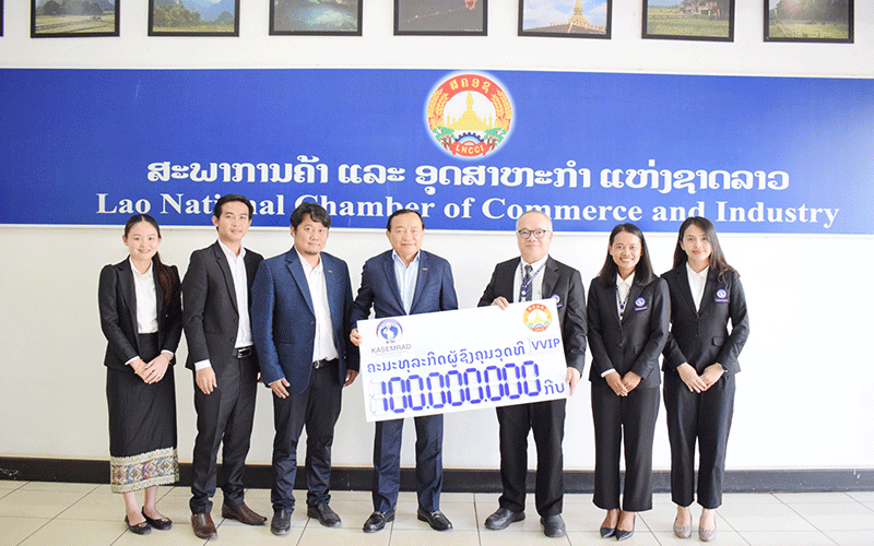 The contribution was formally presented by the Director of Bangkok Chain International (Lao) Co., Ltd., Dr Watthana Pareesri, and received by the Vice President of the Lao National Chamber of Commerce and Industry, Mr Daovone Phachanthavong, at the LNCCI headquarters in Vientiane.
