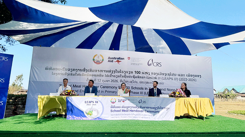 A ceremony took place on Thursday at Phonmuang Primary School in Xepon district, Savannakhet province, to mark the handover of 100 primary schools in Xepon and Nong districts to the National School Meals Programme, strengthening efforts to improve child nutrition and education outcomes in remote areas of the province.
