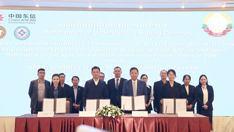 The Memorandum of Understanding was signed by the Head of Office of the Ministry of Technology and Communications, Mr Phouangpaseuth Keosouvan; Vice President of China-ASEAN Information Harbor Co., Ltd., Ms Xuan Yi; and company representatives.