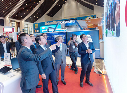 Mr Saleumxay visited Huawei’s booth at the event after attending an annual meeting on technology and communications along with a delegation.