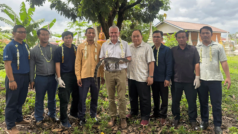At Tansoum village, Mr Gallagher visited the Crocodile Information Centre, observed crocodile nests, and shared a samakhee meal with villagers.