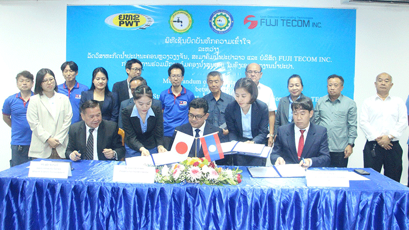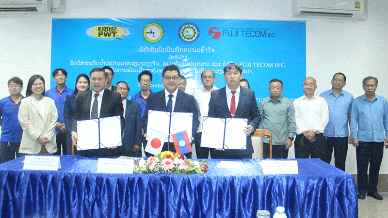 A Memorandum of Understanding (MOU) on the venture was signed in Vientiane last week by the Association’s Acting President, Mr Soulith Chindamany, Nam Papa Nakhonluang’s Managing Director, Mr Xaynha Xaymoungkhoung, and the President of Fuji Tecom Co., Ltd., Mr Shinichi Moriyama.