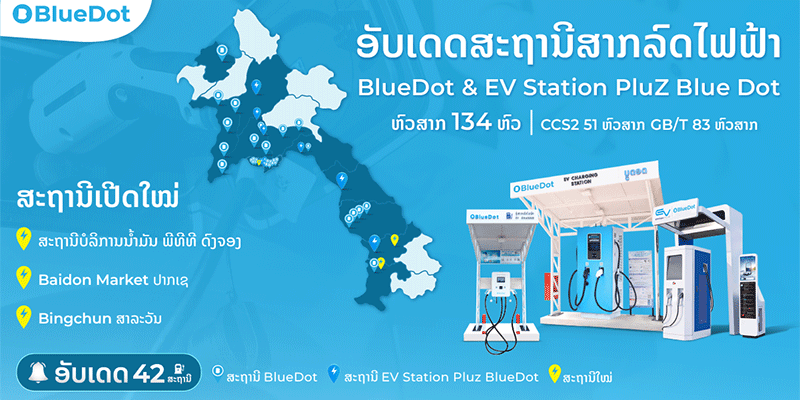 At present, BlueDot operates more than 40 charging stations with over 120 plugs across Laos, with plans to expand further to ensure nationwide coverage.
