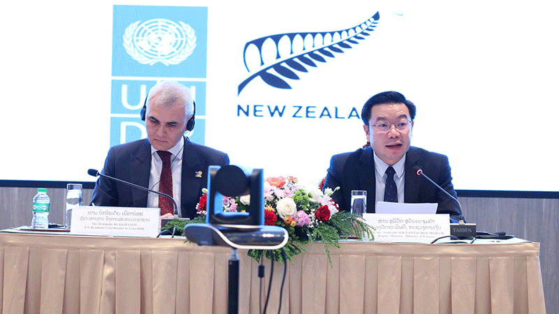 Deputy Minister of Finance Mr Soulivath Souvannachoumkham (right) and the United Nations Resident Coordinator in Laos, Mr Bakhodir Burkhanov. --Photo Ministry of Finance |
