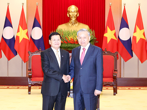 | The Secretary General of the Lao People’s Revolutionary Party met with General Secretary of the Communist Party of Vietnam, To Lam, during President Thongloun’s visit to lead the Lao delegation in signing the United Nation Convention against Cybercrime. |