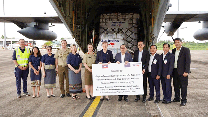 A handover ceremony took place on Tuesday at Wattay International Airport to mark the arrival of humanitarian supplies delivered by a Royal Australian Air Force C-130 aircraft, according to the Australian Embassy in Vientiane.