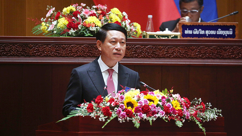 | Deputy Prime Minister Saleumxay Kommasith highlights past achievements and future plans to tackle economic and financial issues. --Photo Sangkhomxay |