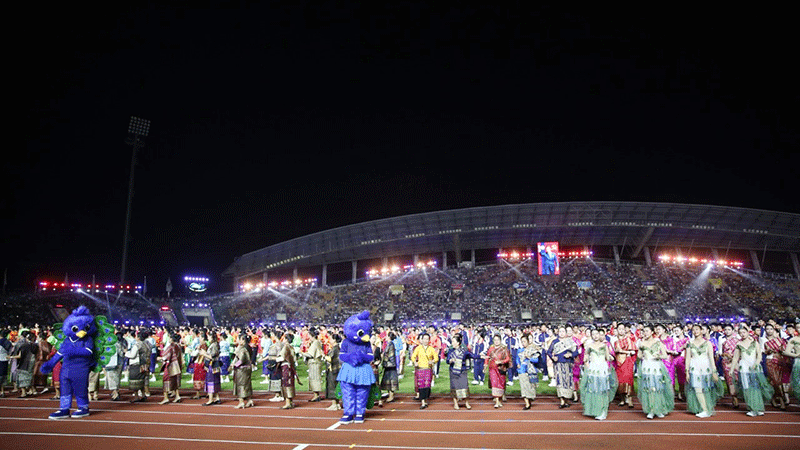 The grand opening ceremony was led by President Thongloun Sisoulith and attended by government leaders, former leaders and other officials, alongside athletes, trainers, and a crowd of enthusiastic spectators.