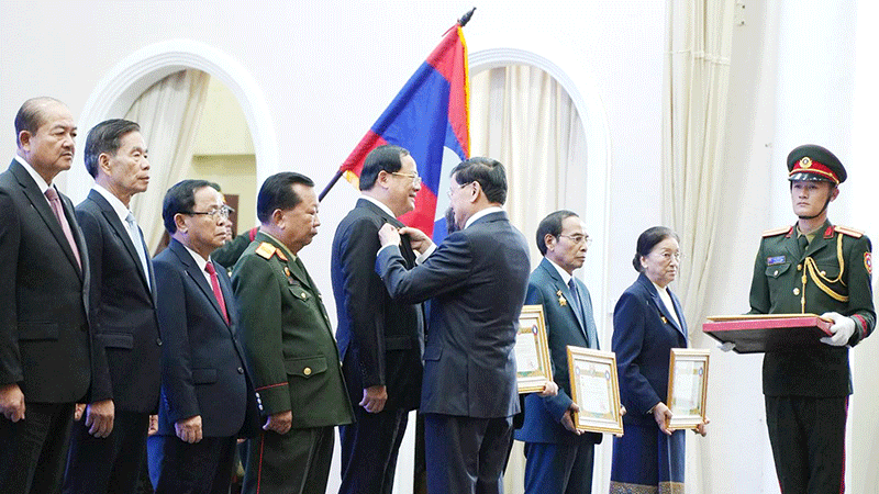Current and former leaders on Thursday received commemorative medals to mark 50 years of the establishment of the Lao People’s Democratic Republic.