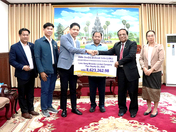 Lane Xang Minerals Limited Company (LXML) on December 5 officially handed over its royalty tax payment for the third quarter of 2025, totalling more than US$8.62 million, to Savannakhet provincial authorities.