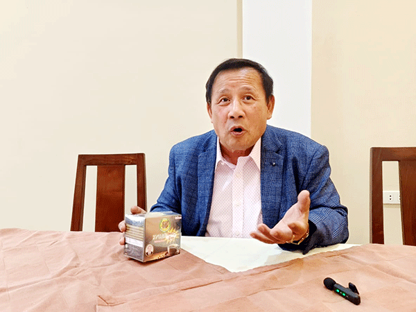| Holding his herbal coffee, Mr Vongsack Serixay explains how he came up with the idea of the “Elephant Power” coffee brand. |