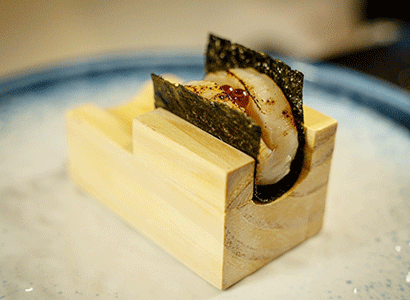 This single bite delivers the aroma of seaweed and the texture of shellfish. |