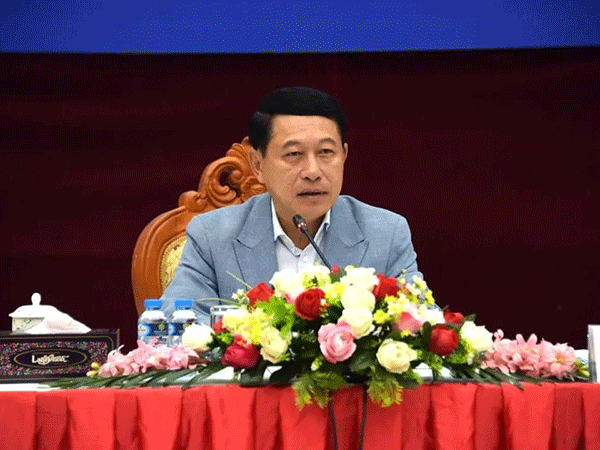 | Deputy Prime Minister Saleumxay Kommasith chairs a meeting of the Laos-Vietnam Cooperation Committee. |