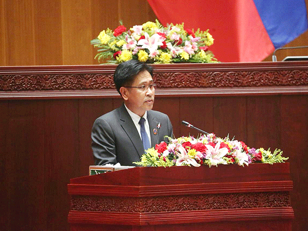 | President of the Supreme People’s Court, Mr Phayvy Sybualypha, addresses the inaugural session of the 10th National Assembly in Vientiane on March 24. |