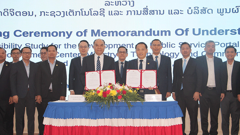 A Memorandum of Understanding on a feasibility study concerning the development of the portal was signed in Vientiane on Thursday last week by the Director General of the Digital Government Centre under the Ministry of Technology and Communications, Dr Thavisack Manodham, and Vice President of the Phongsavanh Group and CEO of Phounphonnakhone Co., Ltd., Dr Sonephet Inthavong.