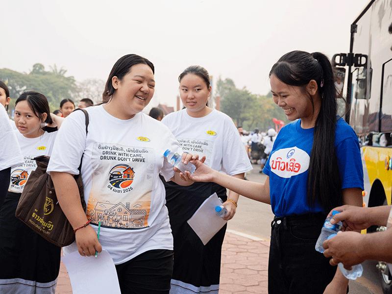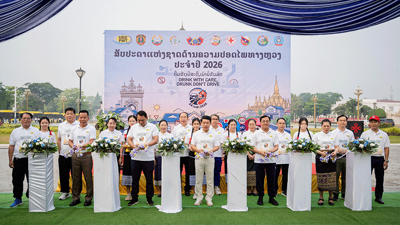 The event, held with the theme of “Standing Drink Responsibly, Don’t Drive”, was attended by the Deputy Prime Minister, Mr Saleumxay Kommasith, the Minister of Public Works and Transport, Mr Leklay Sivilay, and the Chairman of the Vientiane Administration Committee, Mr Sililatthongsing Thongpheng, alongside deputy ministers, officials from central and local authorities, business representatives, students and media personnel.