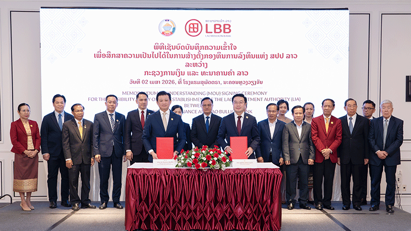 The initiative was formalised on Thursday, the 2nd of April 2026 at the Suphattra Hotel, Vientiane with the signing of a Memorandum of Understanding between the Ministry of Finance and the Lao Bullion Bank to conduct a feasibility study on the fund’s establishment.