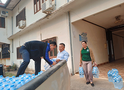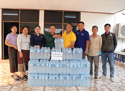 On April 13, 2026, the Lao Brewery Company's Director of Corporate Affairs, CSR and Sustainability, Mr Sithixay Ketthavong, and representatives of the company’s mass organisations handed over Tigerhead drinking water to the Pakngum District Disaster Unit. The donation was received by the Chairman of the Pakngum District Administration Committee, Mr Keopaseuth Xaypanya.
