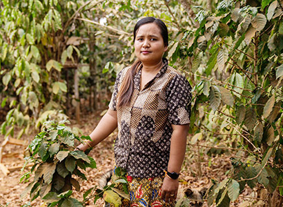 Mrs Pheuy Thavisak, whose income is mainly sourced from coffee farming in Saravan province, on the Bolaven Plateau.