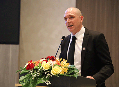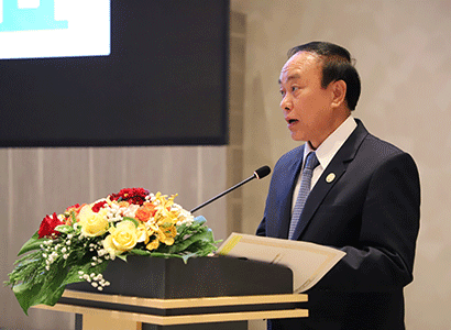 | Minister of Health Dr Bounfeng Phoummalayasith speaks at the MOU signing ceremony. |